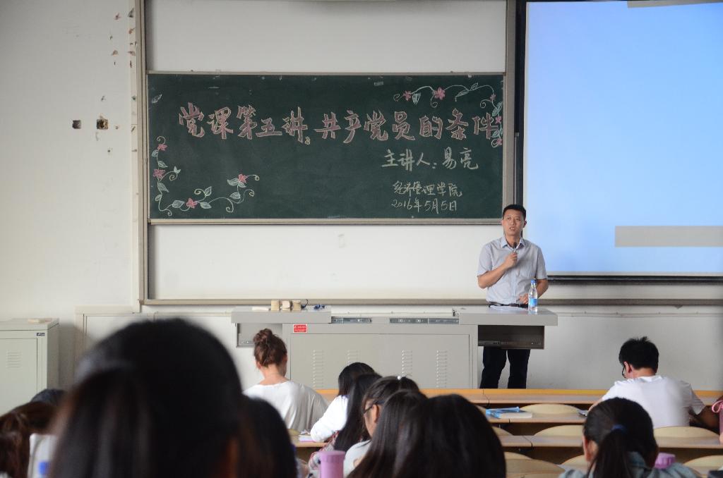 为了强化入党积极分子对党的理解,提高党课学员的党性修养。5月5日下午,437437必赢国际网址第52期党课培训第五讲在教1-404顺利开讲。担任本次课程的主讲人是校办秘书科易亮老师,我院全体入党积极分子参加了本次培训。