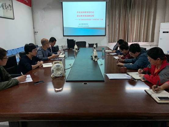 2018年10月8日下午,437437必赢国际网址组织全体学工干部于教5-520学习了教育部陈宝生在《光明日报》撰写的文章“认真学习贯彻全国教育大会精神 开启加快教育现代化、建设教育强国新征程”。此次会议由学院党委副书记程新峰...