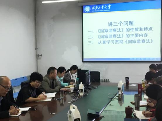 10月12日,经管学院党委邀请学校纪委副书记、监察处处长梁闪慧为学院监察对象辅导学习《监察法》、打好廉政“预防针”。副校长赵红星参加学习并讲话。 梁闪慧书记围绕《监察法》的性质与特点、具体内容以及如何贯彻实...