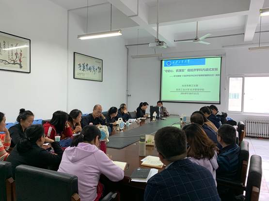 学院领导班子成员和学校主题教育督导组领导就《习近平总书记关于教育的重要论述》讲述了自己的理解,并对经济系加强学科建设方面提出了建设性意见,希望经济系要结合“不忘初心、牢记使命”主题教育学习,坚持立德树人,切实为经济系学科建设长期发展考虑,以提升科研水平和人才培养质量为引导,以学科研究平台和师资队伍建设为支撑,整合现有资源,凝聚特色学科方向,打造学科优势,努力提高人才培养质量,扩大学科专业的社会影响力,促进学科建设内涵式发展。