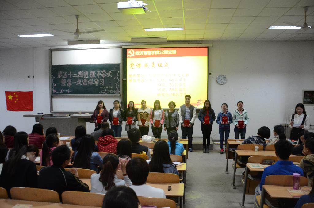 为了进一步提高同学们的党政素质,加深同学们对党的精神的认识与理解,激发同学们爱国,爱党的热情,我院于3月28日晚上6点20分在教3―115举行了经管学院第五十二期党课培训开学典礼与第一次的党课培训。出席此次典礼的有党委书记曲敏、党委副书记程新峰,团委书记冯川川,以及各个学生支部书记。第五十二期全体党课学员及党员辅导员参加此次会议。