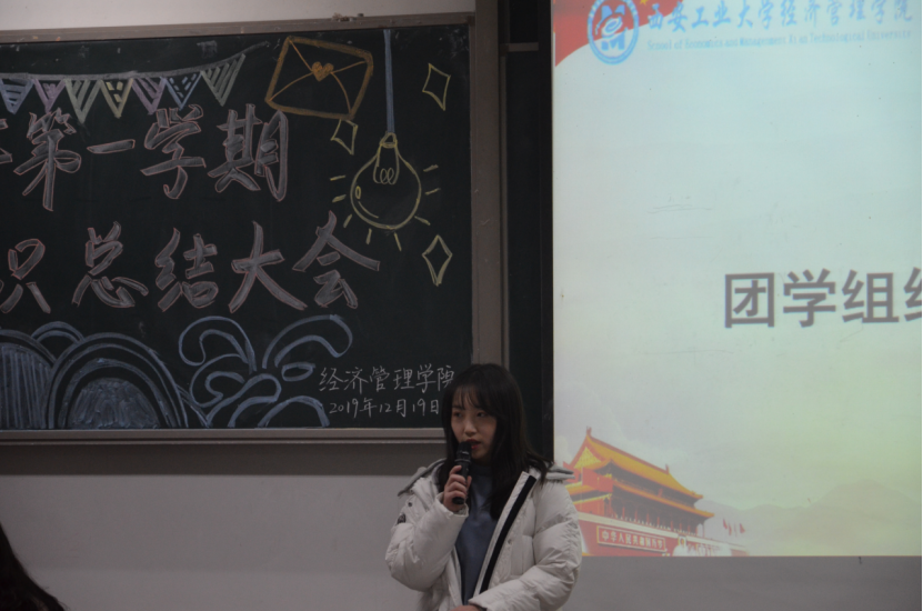 大会伊始,团学组织秘书长白宇洁作出讲话,她从活动开展与制度建设两个方面进行总结,肯定了过去一学期各项活动的贯彻实施及队伍建设的稳定发展。同时,她阐明学生干部应具有的“三心二意”之精神:责任心、自信心、包容心及满怀诚意,探寻工作意义。紧接着,团学组织各部门部长依次上台进行工作总结及答辩,回顾本学期的工作亮点,对存在的问题进行反思并提出改进方案,对下学期的工作进行规划,许金鑫老师也就具体问题进行了针对性的指导。随后,许金鑫老师及团学组织主席团为本学期优秀部门、优秀部员颁发荣誉证书并进行合影留念,优秀部员代表文艺部干事吴庆圆的精彩发言也使大会气氛达到高潮。最后,许金鑫老师肯定全体成员的工作成绩,结合具体实际提出看法,号召全体学生干部不忘初心,再接再厉,充分明确自身身份转换,希望大家总结经验与不足,克服现有的困难,更好地迎接下一学期的工作。