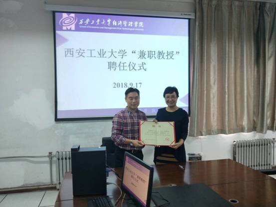 2019年9月17日上午,在437437必赢国际网址学术交流中心举行聘任段文杰博士为437437必赢国际网址“兼职教授”的仪式。参加人员有437437必赢国际网址领导,管理系教师代表和创新创业研究所师生,副书记程新峰主持仪式。