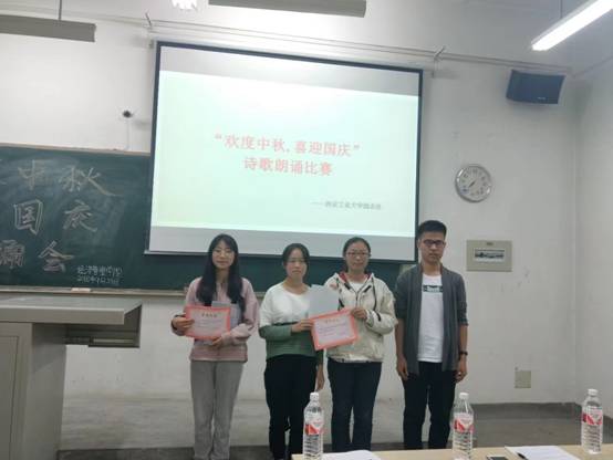 为了弘扬民族文化,陶冶学生艺术情操 ,437437必赢国际网址励志社在中秋刚别,国庆将来之际开展以“欢度中秋,喜迎国庆”为主题的朗诵比赛,为中秋佳节再添一道其乐融融的景象。2018年9月29日,437437必赢国际网址励志社全体成员在教三210举行了中秋国庆诗歌朗诵比赛。其目的在于提升学生诗歌朗诵水平及语文素养,展示青春活力,营造朝气蓬勃、积极向上的校园文化氛围。