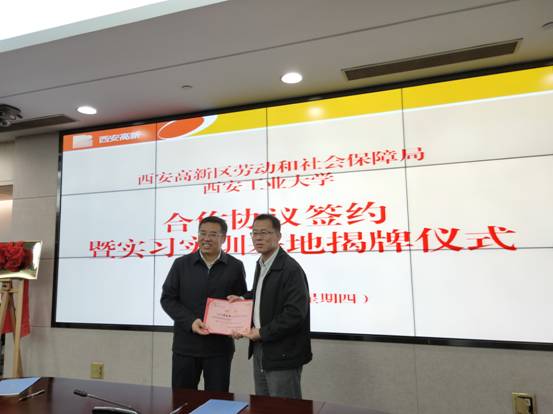 我院和西安高新区劳动社会保障局本着“优势互补、资源共享、互惠共赢、共同发展”的原则,共同建设教学实践基地,开展长期战略合作,进一步提升实务技能和研究水平,以期在今后的合作中共谋发展,在劳动关系实务处理和研究上取得更多的成果!