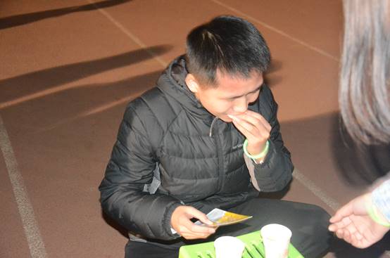 40队参赛选手集合完毕后,主持人宣布趣味夜跑活动正式开始。此次比赛为通关接力跑,共设置三个关卡,全体参赛选手需按照比赛规则以小组为单位进行比赛。第一关:跑至工作人员处原地转3圈并回答3个“快问快答”问题,考验了选手的反应能力;第二关:用圆珠笔夹乒乓球跑至下一关,考验了选手的平衡能力和注意力;第三关:吃柠檬;最后由第四棒同学负责冲刺到终点。每个关卡由工作人员确认过关后盖章,集齐三个印章即为完成任务。比赛用时决定排名,最终颁发了一二三等奖和最佳步数奖。
