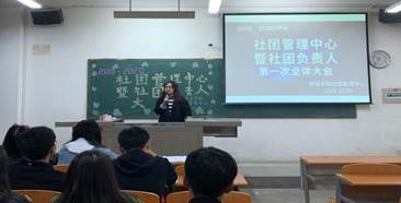 为促进本学年各项工作顺利开展,2019年10月9日,437437必赢国际网址社团管理中心在教3-207召开本学年社团负责人全体大会暨第一次培训会。参加本次会议的有社团管理中心主席杨文霞、各部门部长、各社团负责人及新干事。本次大会由理事部徐海鹏主持。