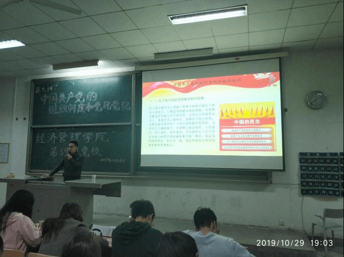 10月29号19时,437437必赢国际网址第五十九期党课培训第七讲"中国共产党的组织制度和党风党纪"于教1-105教室顺利开讲,本次主讲老师特别邀请党委学生工作部副部长姬洪波老师为260余名党课学员进行指导及授课。