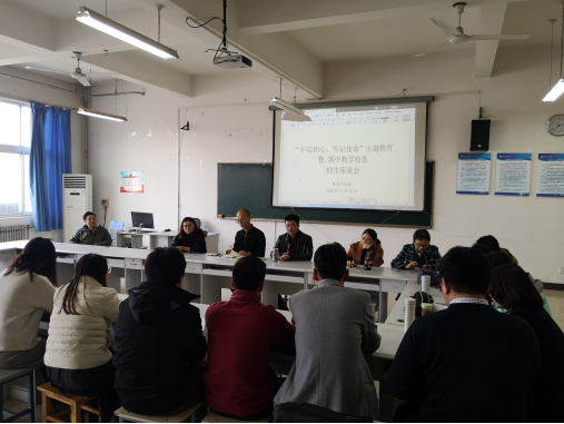 为倾听学生心声,了解教师教学情况,提高教书育人质量,2019年11月22日下午2:00-3:30,商务信息系结合“不忘初心、牢记使命”主题教育,举行了“不忘初心、牢记使命”主题教育暨期中教学检查师生座谈会。商务信息系大部分教师,信息管理与信息系统、物流管理两个专业四个年级约20名同学参加了座谈会。学院副书记程新峰老师应邀出席。