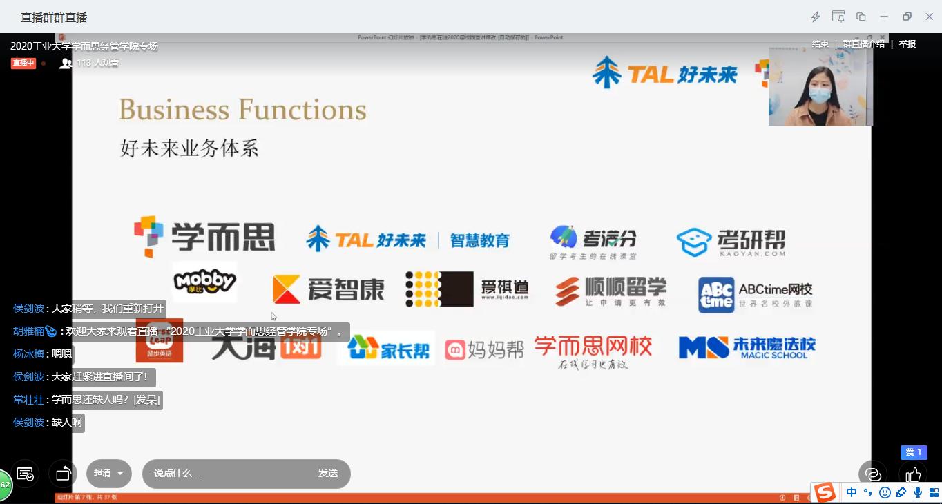 为充分发挥我校校友资源优势,帮助我院毕业生更好择业,2020年4月9日下午15点,经管学院邀请校友企业举办教育培训机构联合云招聘,为2016级毕业生召开线上招聘宣讲会。本次宣讲会邀请到我院2019届毕业生胡亚楠、中公教育王洁老师、2016级任书豪同学,让同学们近距离同在职校友交流,为我院毕业生的就业需求提供了有力保障。
