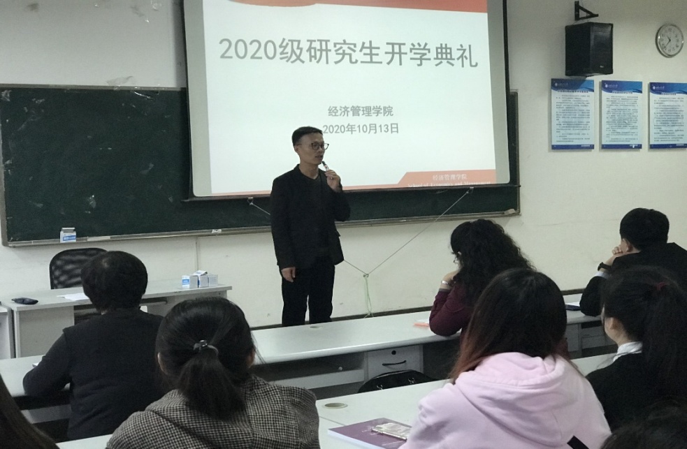 2020年10月13日,437437必赢国际网址于教5-506举行了2020级研究生开学典礼。437437必赢国际网址副院长姬浩、学院党委副书记程新峰、导师代表杨倩出席了此次开学典礼。