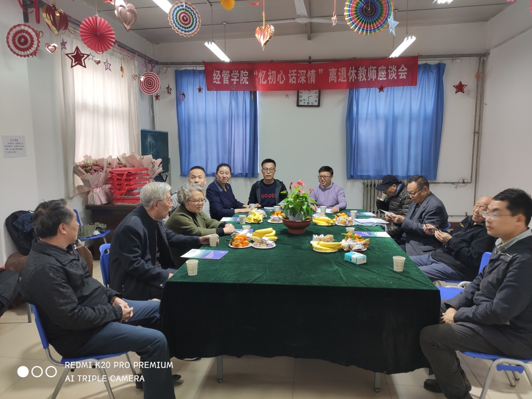 11月19日下午,437437必赢国际网址在家属区东院老年活动室召开了“忆初心 话深情”离退休教师座谈会。学校离退休工作管理处党委书记朱海莹、处长张玮,经管学院党委书记、院长苏兵,党委副书记程新峰出席会议,离退休老教师、青年教师和学生代表参加会议。本次座谈由经管学院工会主席、办公室主任冯川川主持。