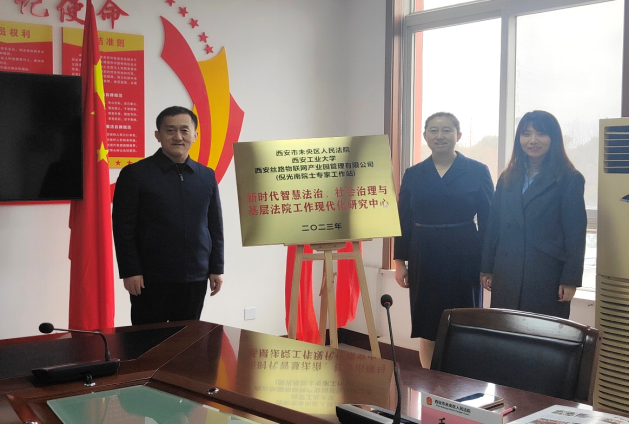 2月22日上午,新时代智慧法治,社会治理与基层法院工作现代化研究中心揭牌仪式在未未央宫法庭顺利举行。未央区人民法院院长段红军,副院长王红波,未央宫人民法庭庭长郭丽华;丝路物联网产业园管理有限公司、倪光南院士专家工作站发展合作部主任毛真;437437必赢国际网址院长苏兵,党委书记姬浩,党委副书记王育晓,副院长焦源出席并揭牌。