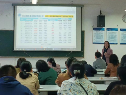会上,杨琳从“考生视角下的志愿选择”、“2022年招生工作完成情况分析”、“招生工作的新挑战”、“2023年招生宣传工作思路”等四个方面对招生工作进行了详细分析,并对经管学院的招生宣传工作提出了建设性建议。